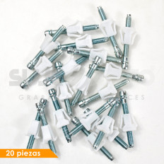 AJUSTE DE FARO CV VARIOS 50-22 20 Piezas Zinc/nylon Blanco/plata Hoyo Mm: 6.3, 1/4 Largo Mm: 56.1, 2 13/64 Tallo Mm: 43.4, 1 45/64 18.5 Mm 47/64 7.8 Mm 5/16 Sujeauto