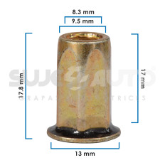 BUJE HEXAGONAL UNIV VARIOS 50-22 25 Piezas Zinc Acero 8.3 21/64 9.5 3/8 17.8 45/64 17 43/64 13 33/64 Sujeauto