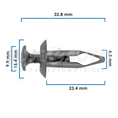 Cantidad: 15 PIEZAS Material: NYLON Color: NEGRO Hoyo mm: 6.5 Hoyo Pulgadas: 1/4 Largo mm: 32.8 Largo Pulgadas: 1 19/64 Tallo mm: 23.4 Tallo Pulgadas: 59/64 Cabeza Superior mm: 9.9 Cabeza Superior Pulgadas: 25/64 Cabeza Media mm: 15.4 Cabeza Media Pulgadas: 39/64 Marca: Sujeauto