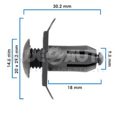 GRAPA DE PRESION MZ 3 03-06 15 Piezas Nylon Negro 9.8 25/64 30.2 1 3/16 18 45/64 14.6 37/64 20 X 29.2 25/32 X 1 5/32 Sujeauto