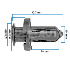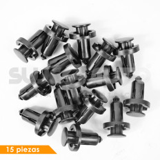GRAPA DE PRESION NS XTRAIL 2.5L MZ CX-7 07-12 NS VERSA 12-19 HD CR-V 12-16/ACCORD 97-08/CIVIC 01-13/ODYSSEY 00-10 15 Piezas Nylon Negro Hoyo Mm: 10, 25/64 Largo Mm: 30.7, 1 13/64 Tallo Mm: 18, 45/64 Cabeza Superior Mm: 13.8, 35/64 Cabeza Inferior Mm: 19.8, 25/32 Sujeauto