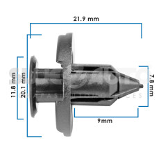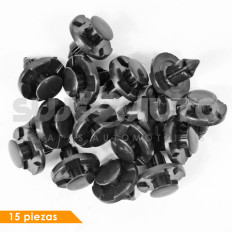 GRAPA DE PRESION NS TIIDA TY YARIS 06-11 VW SAVEIRO 10-18 NS ALMERA 01-05/FRONTIER 01-24/MARCH 12-24/TITAN 04-15/VERSA 12-24/XTRAIL 05-22 15 Piezas Nylon Negro Hoyo Mm: 7.8, 5/16 Largo Mm: 21.9, 55/64 Tallo Mm: 9, 23/64 Cabeza Superior Mm: 11.8, 15/32 Cabeza Media Mm: 0, Cabeza Media Pulgadas: