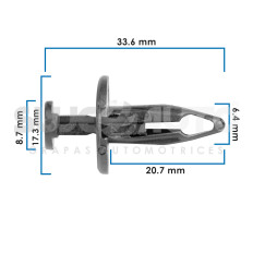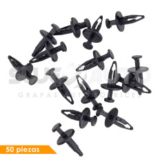 Cantidad: 15 PIEZAS Material: NYLON Color: NEGRO Hoyo mm: 6.4 Hoyo Pulgadas: 1/4 Largo mm: 33.6 Largo Pulgadas: 1 21/64 Tallo mm: 20.7 Tallo Pulgadas: 13/16 Cabeza Superior mm: 8.7 Cabeza Superior Pulgadas: 11/32 Cabeza Inferior mm: 17.3 Cabeza Inferior Pulgadas: 11/16 Marca: Sujeauto
