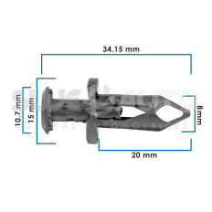 GRAPA DE PRESION CV AVALANCHE/BLAZER 97-02/COLORADO 06-12 15 Piezas Nylon Negro Hoyo Mm: 8, 5/16 34.1 1 11/32 Tallo Mm: 20, 25/32 Cabeza Superior Mm: 10.7, 27/64 Cabeza Media Mm: 0, Cabeza Media Pulgadas: 0, Cabeza Inferior Mm: 15, 19/32 Sujeauto