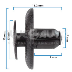 GRAPA DE PRESION TY COROLLA 03-08 25 Piezas Nylon Negro 7 9/32 16.2 41/64 9 23 / 64 13 33/64 20 25/32 Sujeauto