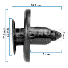 GRAPA DE PRESION TY VARIOS 50-22/YARIS 4P SEDAN 17-20/HILUX 05-22 5 Piezas Nylon Negro 7 9/32 18.9 3/4 8 5/16 13.9 35/64 20.3 51/64 Sujeauto