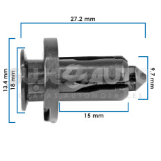 Grapa De Presion PATRIOT JEEP 45/64 18 17/32 13.4 2 PIEZAS NEGRO 3/8 9.7 1 5/64 27.2 Sujeauto NYLON 19/32 15