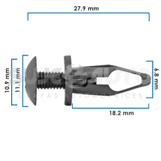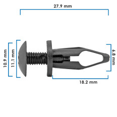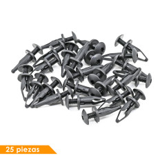 GRAPA DE PRESION DG RAM 1500 19-24 25 Piezas Nylon Negro Hoyo Mm: 6.8, 17/64 27.9 1 3/32 Tallo Mm: 18.2, 23/32 Cabeza Superior Mm: 10.9, 7/64 Cabeza Inferior Mm: 11.1, 7/16 Sujeauto