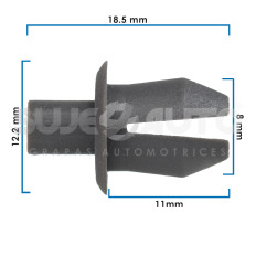 GRAPA DE PRESION AD VARIOS 00-06 15 Piezas Nylon Gris 8 5/16 18.5 47/64 11 7/16 12.2 31/64 Sujeauto