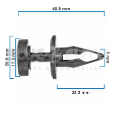 GRAPA DE PRESION CR VARIOS 50-22 15 Piezas Nylon Negro 9 23 / 64 40.8 1 39/64 23.2 29/32 17.3 11/16 20.8 13/16 Sujeauto