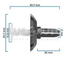 GRAPA DE PRESION FD VARIOS 50-22 15 Piezas Nylon Negro/blanco Hoyo Mm: 8, 5/16 Largo Mm: 43.9, 1 47/64 Tallo Mm: 20, 25/32 Cabeza Superior Mm: 15.8, 5/8 Cabeza Media Mm: 33.7, 1 21/64 Sujeauto