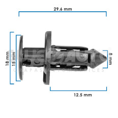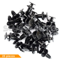 GRAPA DE PRESION TY VARIOS 50-22 25 Piezas Nylon Negro Hoyo Mm: 8, 5/16 Largo Mm: 29.6, 1 11/64 Tallo Mm: 12.5, 31/64 Cabeza Superior Mm: 15, 19/32 Cabeza Media Mm: 18, 45/64 Sujeauto