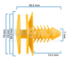 GRAPA DE TAPICERIA BK CENTURY 00-10 50 Piezas Nylon Amarillo 7 9/32 20.2 51/64 13.6 17/32 18 45/64 18 45/64 20.3 51/64 Sujeauto