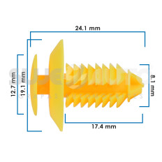 Grapa De Tapiceria CIVIC HONDA 3/4 19.1 1/2 12.7 6 PIEZAS AMARILLO 5/16 8.1 61/64 24.1 Sujeauto NYLON 11/16 17.4