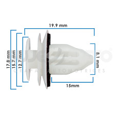 GRAPA DE TAPICERIA MZ CX-5 13-16 TY 4 RUNNER 03-21/AVALON 13-21/C-HR 17-21/CAMRY 02-21/COROLLA 09-13 19-21/FJ CRUISER 07-14/HIGHLANDER 01-21/LAND CRUISER 98-21/MATRIX 09-14/PRIUS 10-21/RAV 4/SEQUOIA 01-21/SIENNA 05-21/TACOMA 00-16/TUNDRA 00-21/YARIS 06-18 25 Piezas Nylon Blanco 8.1 5/16 19.9