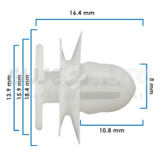 GRAPA DE TAPICERIA NS PATHFINDER 96-04 HD FIT 09-14 20 Piezas Nylon Blanco 8 5/16 16.4 41/64 10.8 27/64 13.9 35/64 15.9 5/8 18.4 23/32 Sujeauto