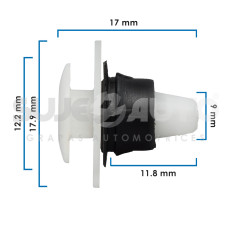 GRAPA DE TAPICERIA VW GOLF 99-22/SAVEIRO 2020 10-18 10 Piezas Nylon Blanco 9 23 / 64 17 43/64 11.8 15/32 12.2 31/64 17.9 45/64 Sujeauto