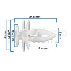 GRAPA DE TAPICERIA FD VARIOS/GRAND MARQUIS 80-89/GRANADA 1980/MUSTANG 80-86 LN TOWN CAR 81-89 FD LTD 80-90 50 Piezas Nylon Blanco 8 5/16 24.8 31/32 17.6 11/16 12.9 33/64 19.5 49/64 19 3/4 Sujeauto