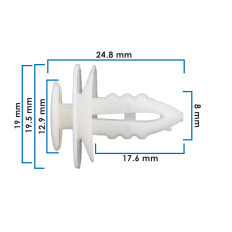 Grapa De Tapiceria GRAND MARQUIS FORD 3/4 19 49/64 19.5 33/64 12.9 4 PIEZAS BLANCO 5/16 1000 31/32 24.8 Sujeauto NYLON 11/16 17.6