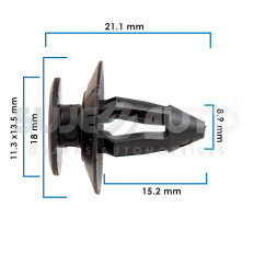 GRAPA DE TAPICERIA VW POINTER 4P 97-99/TIGUAN 18-22/POINTER 00-05 15 Piezas Nylon Negro 8.9 11/32 21.1 53/64 15.2 19/32 11.3 X13.5 7 /16 X 17/32 18 45/64 Sujeauto