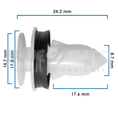 GRAPA DE TAPICERIA DG RAM 1500/2500/3500 09-18 10 Piezas Nylon Blanco 8.7 11/32 24.2 61/64 17.6 11/16 14.7 37/64 17.8 45/64 Sujeauto