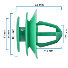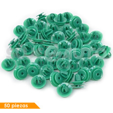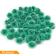 GRAPA DE TAPICERIA HY TUCSON 22-25 50 Piezas Nylon Verde Hoyo Mm: 9.7, 3/8 Largo Mm: 16.5, 21/32 Tallo Mm: 9.3, 23/64 Cabeza Superior Mm: 13, 33/64 Cabeza Media Mm: 16, 5/8 18.1 23/32 Sujeauto
