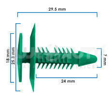 GRAPA DE TAPICERIA CV UPLANDER 05-08 50 Piezas Nylon Verde 7 9/32 29.5 1 5/32 24 15/16 18 45/64 25.3 1 Sujeauto