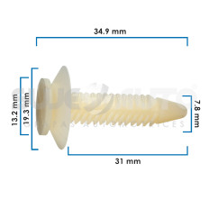GRAPA DE TAPICERIA CV VARIOS 50-22 JP CHEROKEE 84-96 10 Piezas Nylon Blanco 7.8 5/16 34.9 1 3/8 31 1 7/32 13.2 33/64 19.3 49/64 Sujeauto