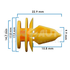 GRAPA DE TAPICERIA CR VARIOS 50-22 50 Piezas Nylon Amarillo 9.9 25/64 22.9 29/32 15.8 5/8 14.7 37/64 17.8 45/64 17.9 45/6 Sujeauto