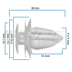 GRAPA DE TAPICERIA TY VARIOS GM TY COROLLA 03-13 MZ CX-4 18-22 SZ VITARA 06-16 TY TACOMA 05-15 50 Piezas Nylon Blanco 9 X 9 23/64 X 23/64 20.2 51/64 15 19/32 13.1 33/64 16.1 41/64 17.8 45/64 Sujeauto