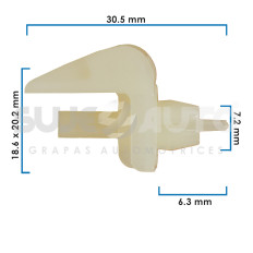 GRAPA DE TAPICERIA VW VARIOS 50-22 25 Piezas Nylon Blanco 7.2 9/32 30.5 1 13/64 6.3 1/4 18.6 X 20.2 47/64 X 51/64 Sujeauto