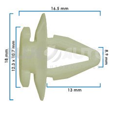 GRAPA DE TAPICERIA VW VARIOS 50-22 25 Piezas Nylon Blanco 8.9 11/32 16.5 21/32 13 33/64 12.3 X 10.7 31/64 X 27/64 18 45/64 Sujeauto
