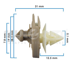GRAPA DE TAPICERIA VW VARIOS 50-22 25 Piezas Nylon Beige/blanco 8.1 5/16 31 1 7/32 12.5 31/64 7.8 5/16 28.5 1 1/8 19 3/4 Sujeauto