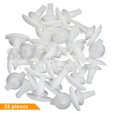 GRAPA PARA HULE DE PUERTA TY C-HR/CAMRY 02-22/COROLLA 03-22/COROLLA CROSS 22-24/FJ CRUISER 08-14/HIGHLANDER 08-22/LAND CRUISER 04-21/MATRIX 03-10/MR2 SPYDER 05-06/PRIUS 10-22/PRIUS C 18-21/RAV 4 04-22/SEQUOIA 09-21/SIENNA 04-22/SOLARA 05-06/TACOMA 06-09/TUNDRA 07-22/YARIS 06-10 25 Piezas Nylon Blan