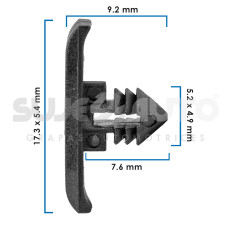 GRAPA PARA HULE DE PUERTA VW GOLF 22-25 50 Piezas Nylon Negro Sujeauto 5.2x4.9 13/64x3/16 Largo Mm: 9.2, 3/8 Tallo Mm: 7.6, 19/64 17.3x5.4 43/64x13/64