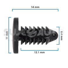 GRAPA PARA HULE DE PUERTA CR VARIOS 50-22 FD RANGER 98-04 50 Piezas Nylon Negro 5.4 7/32 14 35/64 12.1 15/32 11 7/16 Sujeauto