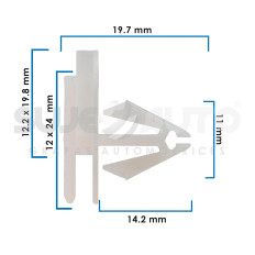 GRAPA PARA MOLDURA BK ALLURE/LaCROSSE 05-09 CD CTS 08-15 CV IMPALA 06-16 HM H2 06-07 PT G6 05-10/GRAND PRIX 04-08 SN AURA 07-09 JP LIBERTY 08-13 15 Piezas Nylon Blanco Sujeauto 11 7/16 19.7 25/32 14.2 9/16 12.2 X 19.8 31/64 X 25/32 12 X 24 15/32 X 15/16