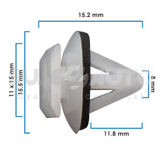 GRAPA PARA MOLDURA GM VARIOS CV VAN/CAPTIVA 08-15 25 Piezas Nylon Blanco Sujeauto 8 5/16 15.2 19.32 11.8 15/32 11 X 15 7/16 X 19/32 15.5 39/64