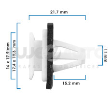 GRAPA PARA MOLDURA HD CIVIC 04-21/ELEMENT 03-11/CR-V 12-16/ODYSSEY 11-18 10 Piezas Nylon Blanco Sujeauto 11 7/16 21.7 55/64 15.2 19/32 16 X 17.9 5/8 X 45/64 17.4 X 19.6 11/16 X 49/64
