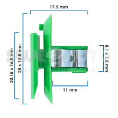 GRAPA PARA MOLDURA BK REGAL 17-19 15 Piezas Nylon Verde Sujeauto 8.1 X 7.8 5/16 X 5/16 17.5 11/16 11 7/16 20.15 X 16.8 51/64 X 21/32 28 X 14.8 45/64 X 37/64