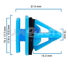 GRAPA PARA MOLDURA MT MONTERO SPORT 02-08 HY AZERA 05-16/GENESIS 17-20/SONATA 09-19 KI OPTIMA 16-20/SORENTO 09-14/STINGER 18-20 25 Piezas Nylon Azul Sujeauto 12 15/32 21.5 27/32 15.3 39/64 76 X 17.7 2 63/64 X 45/64 17.8 X 19.5 45/64 X 49/64