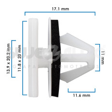 GRAPA PARA MOLDURA CV TRACKER 01-04 25 Piezas Nylon Blanco Sujeauto 11 7/16 17.1 43/64 11.6 26/69 11.8 X 20 15/32 X 25/32 13.9 X 20.2 35/64 X 51/64