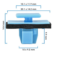 GRAPA PARA MOLDURA HY TUCSON 22-25 25 Piezas Nylon Azul Sujeauto 15x9.2 37/64x23/64 14.4 9/16 Tallo Mm: 9.9, 25/64 10.1x11.9 25/64x29/64 20.1x14.2 25/32x35/64