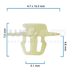 GRAPA PARA MOLDURA HD VARIOS 50-22 20 Piezas Nylon Blanco Sujeauto 5.1 13/64 7.5 19/64 4.8 3/16 4.7 X 10.3 3/16 X 13/32 12 1/5 31/64
