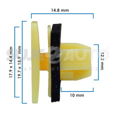 GRAPA PARA MOLDURA HY VARIOS 50-22 15 Piezas Nylon Amarillo Sujeauto 12.2 31/64 14.8 37/64 10 25/64 19.7 X 15.9 25/32 X 5/8 17.9 X 14.4 45/64 X 9/16
