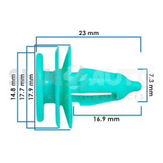 GRAPA PARA MOLDURA TY 4 RUNNER/TUNDRA 01-11 01-09/TACOMA 01-04/HILUX 05-15 2 Piezas Nylon Azul Sujeauto 10 X 7.9 25/64 X 5/16 21.3 27/32 15.5 39/64 10.1 X 9.5 25/64 X 3/8 16.5 21/32