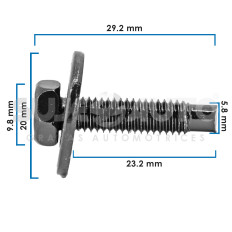 TORNILLO P/GRAPA DOBLE DG RAM 1500 19-24 30 Piezas Zinc Negro Hoyo Mm: 5.8, 15/64 29.2 1 5/32 23.2 29/32 Cabeza Superior Mm: 9.8, 25/64 Rondana Mm: 20, Sujeauto