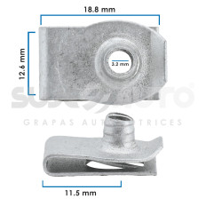 GRAPA DOBLE PARA TORNILLO UNIV VARIOS 20 Piezas Zinc Plata Hoyo Mm: 3.2, 1/8 Largo Mm: 18.8, 47/64 Ancho Mm: 12.6, Corta Mm: 11.5, Sujeauto