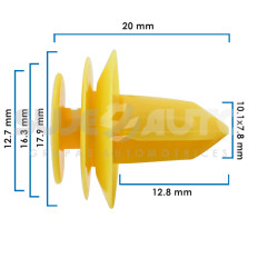 GRAPA DE TAPICERIA NS ALTIMA 07-24 20 Piezas Nylon Amarillo 10.1x7.8 25/64x19/64 Largo Mm: 20, 25/32 Tallo Mm: 12.8, 1/2 12.7 1/2 Cabeza Media Mm: 16.3, 41/64 Cabeza Inferior Mm: 17.9, 45/64 Sujeauto
