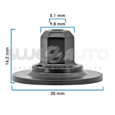 TUERCA DE PRESION VW GOLF 22-25 25 Piezas Nylon Negro Sujeauto Hoyo Mm: 5.1, 3/16 Largo Mm: 16.2, 41/64 Hexagono Mm: 9.8, Cabeza Superior Mm: 30, 1 3/16
